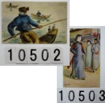 軍事郵便絵はがき「鵜飼」「街上」小倉清三画伯筆