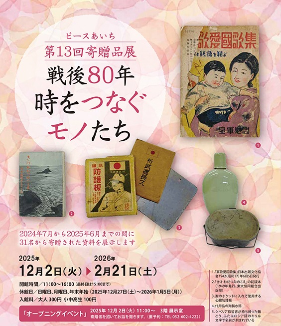 第13回寄贈品展 戦後80年 時をつなぐモノたち 2025年12月2日(火)~2026年2月21日(土)