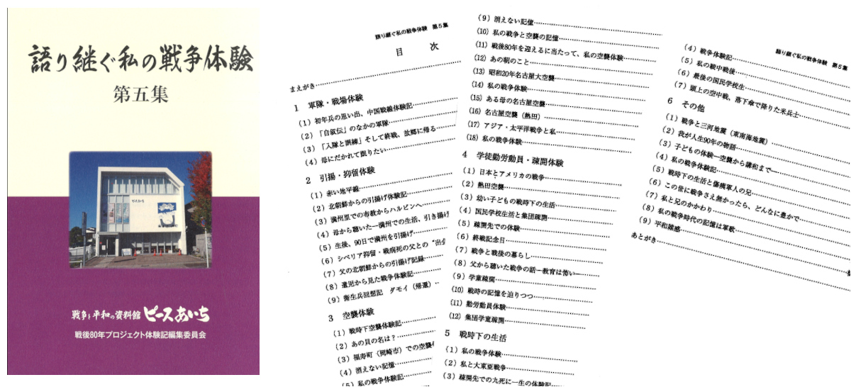 12月13日、ピースあいち戦後80年プロジェクトの一つ「戦争体験を募集し、体験談集第5集を発行」する事ができました。