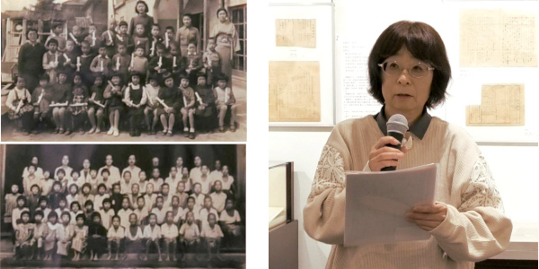 1945(昭和20)年1月、寄贈者の母・加藤 美津子さん〔1936年生まれ〕が当時住んでいた、京都市に空襲があり、小学校では「学童集団疎開」が始まりました。小学校4年生になった美津子さんも京都駅から鉄道で2時間かかる綾部市のお寺に集団疎開しました。寄贈品は疎開先のお寺で撮った集合写真と、その4年前に撮った幼稚園の卒園式の写真です。寄贈者の高山 文子さんは次のように話しました。