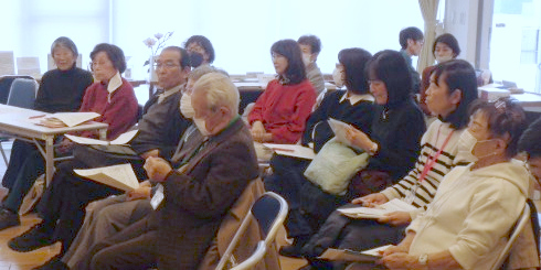 厳しい寒さが続いていましたが、一転春の陽気となった2月15日、「戦争体験を語り継ぐ会」の例会が開催され、会員・事務局総勢23名が参加しました。昨年11月に二つの会が統合、新たな組織で初めて行われた例会です。